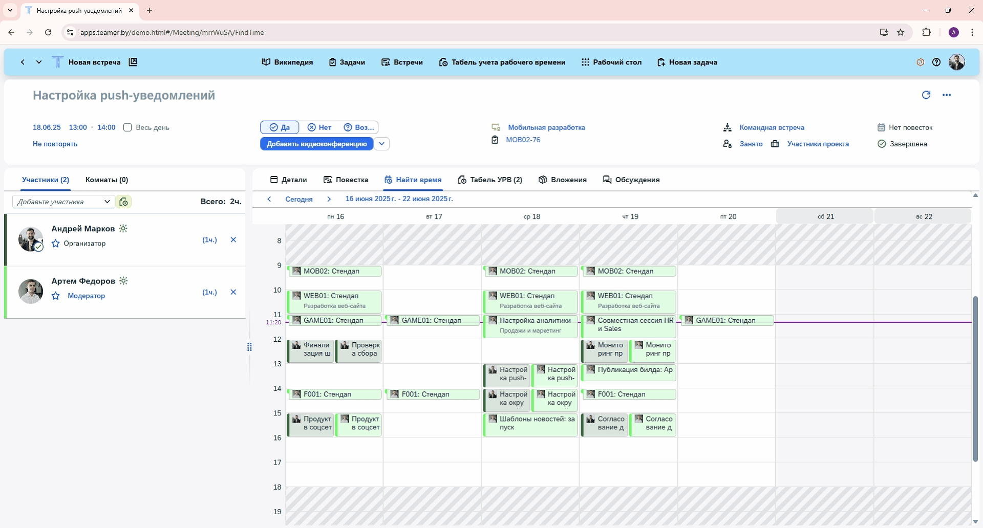 Планирование и согласование рабочего времени