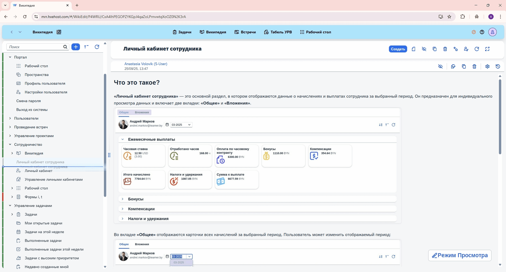 Хранение внутренних документов организации, инструкций, которые доступны всем сотрудникам, отдельным подразделениям или командам.