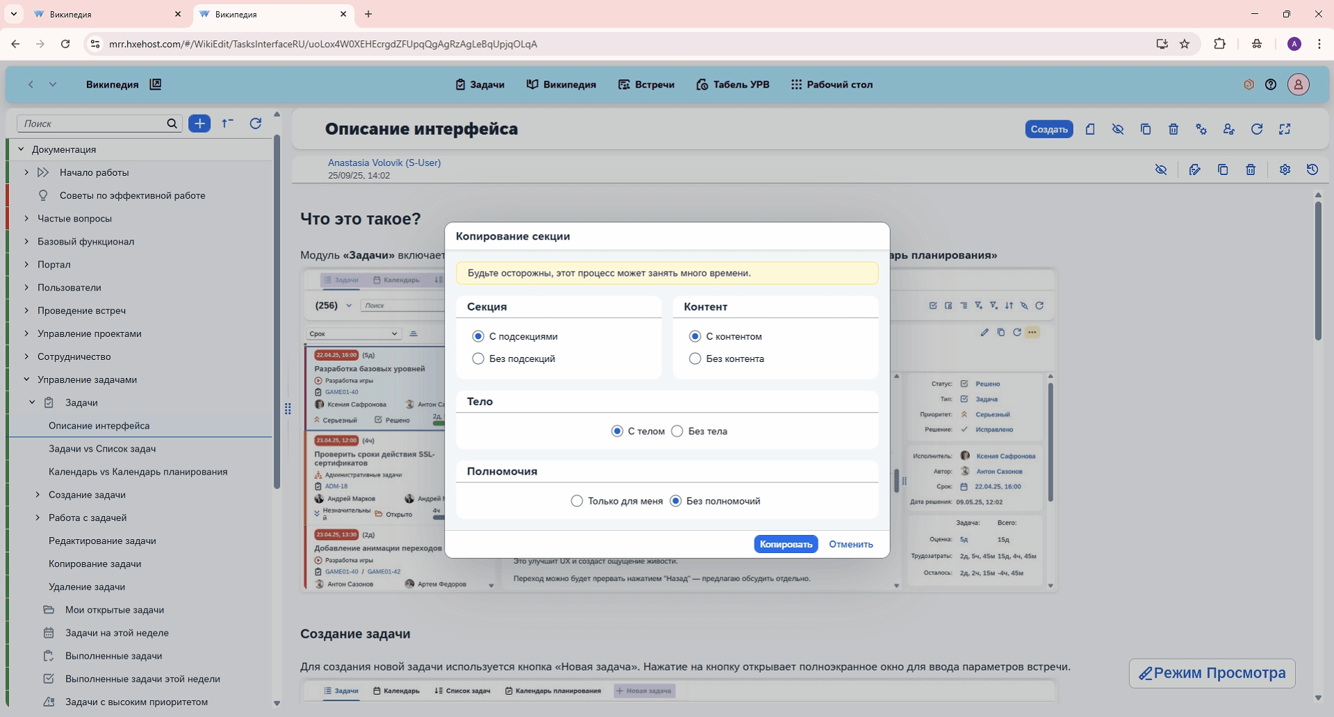 Функция копирования помогает создать раздел, который похож на копируемый, чтобы не дублировать повторяющуюся информацию, а только добавить или изменить уникальную информацию.