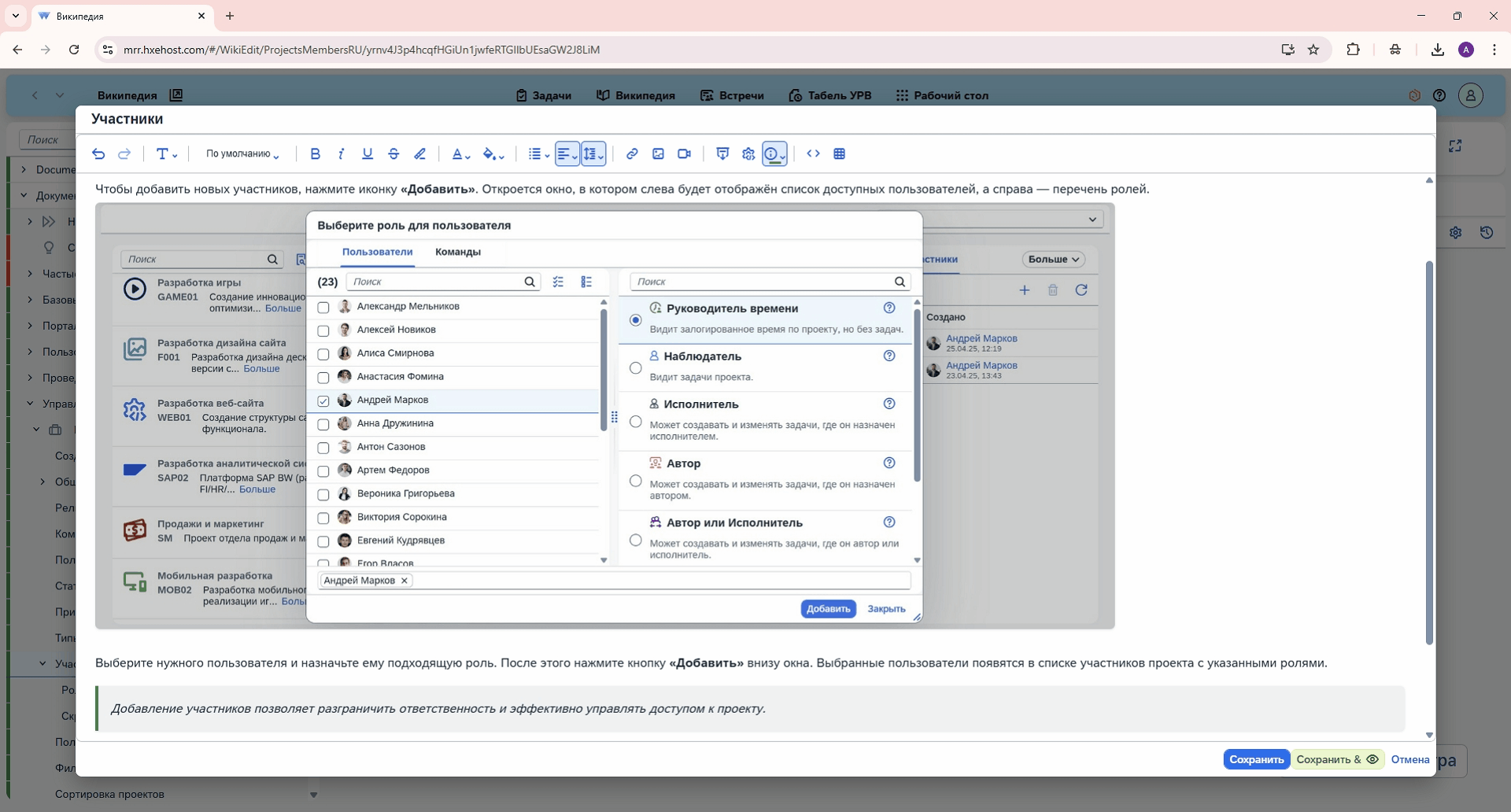 Возможность назначать доступ различного уровня к информации или определенным разделам для отдельного проекта, подразделения или команды и таким образом работать над документами совместно.
