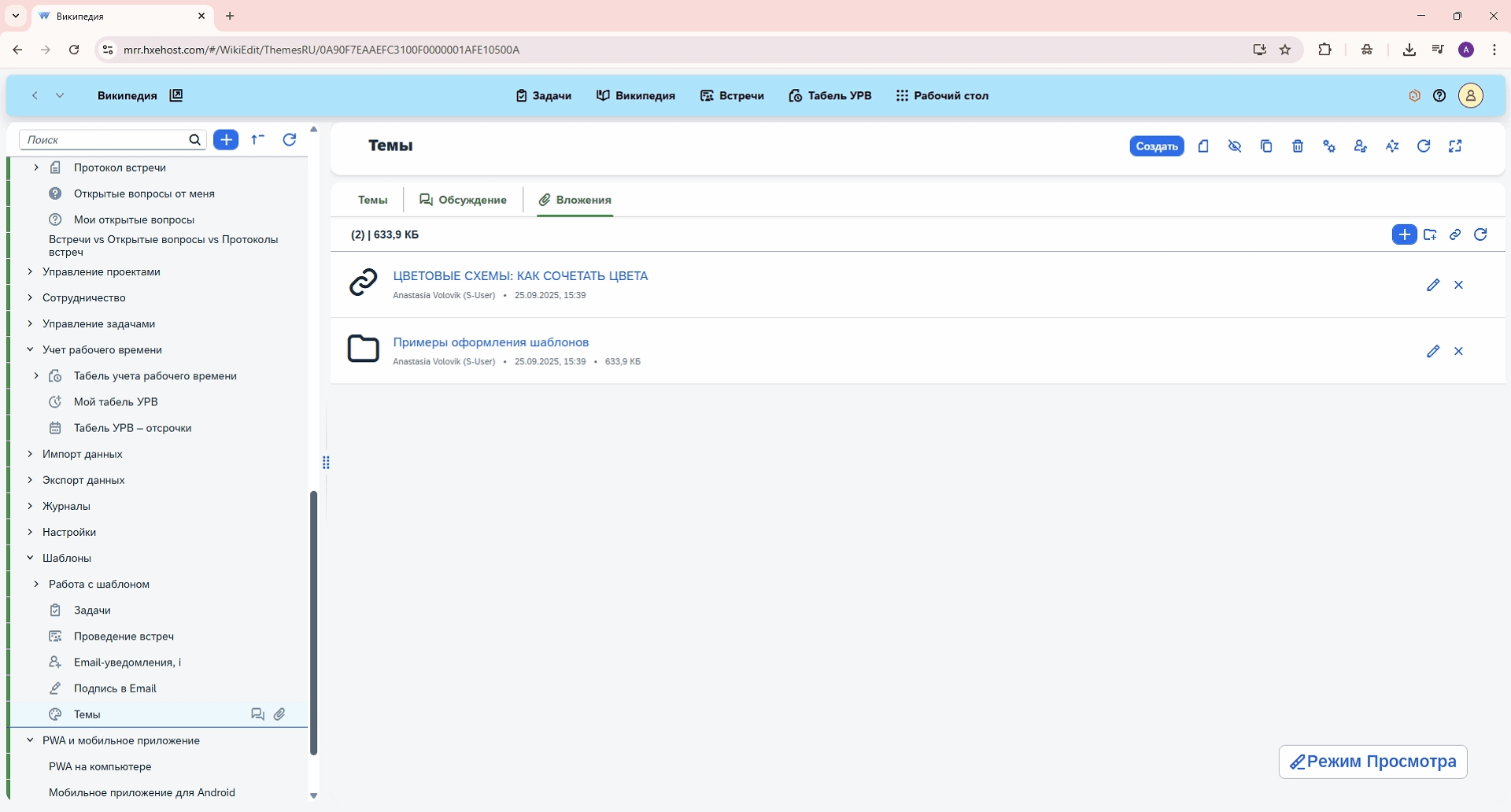 • прикрепление файлов и ссылок к разделу.